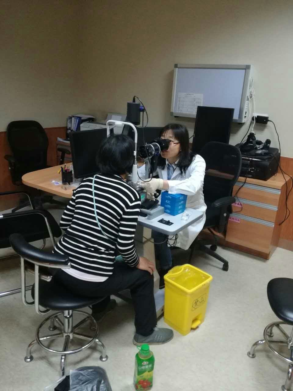 北京清华长庚医院眼科副主任医师刘瑄为义诊民众进行眼部检查