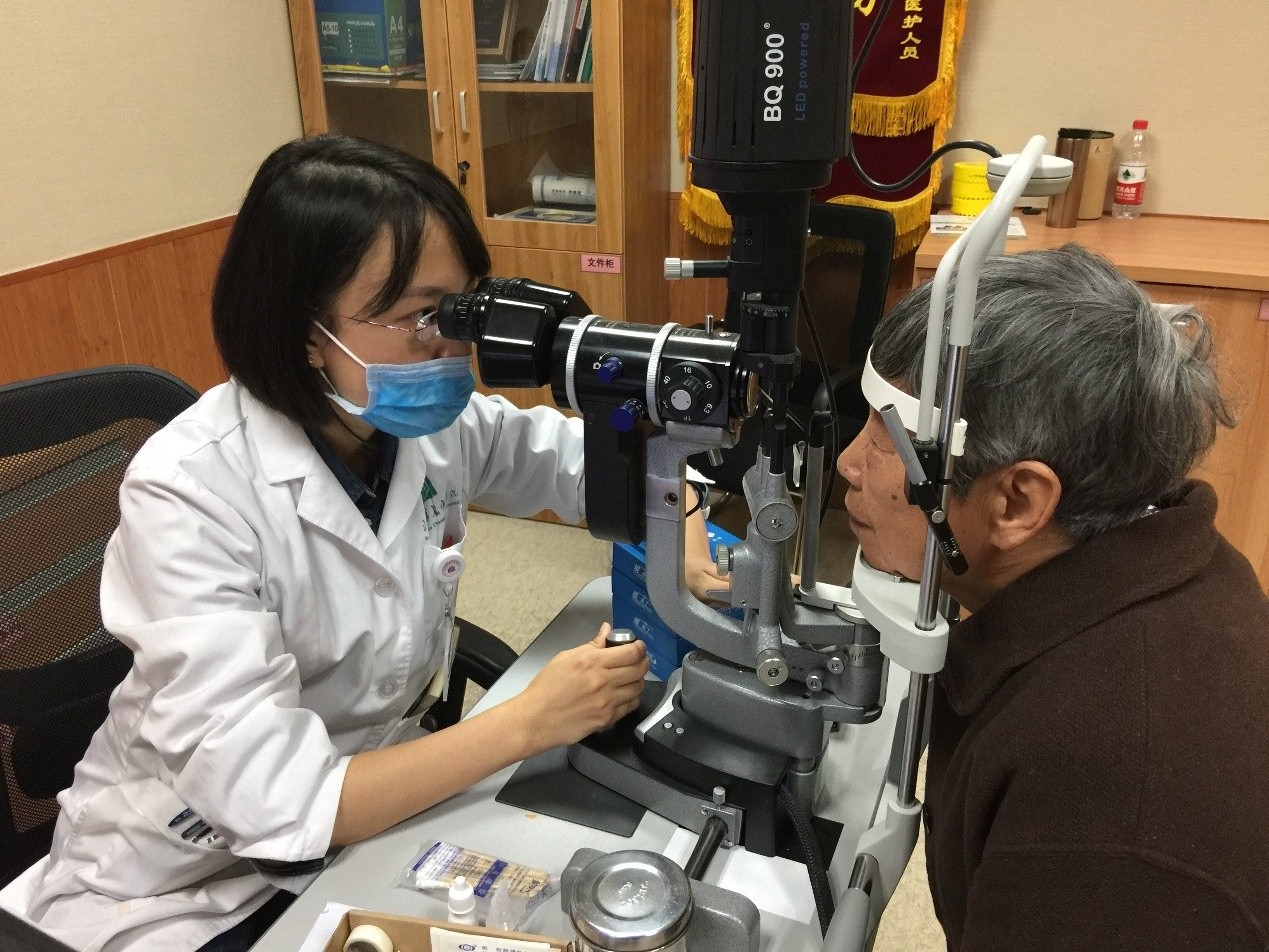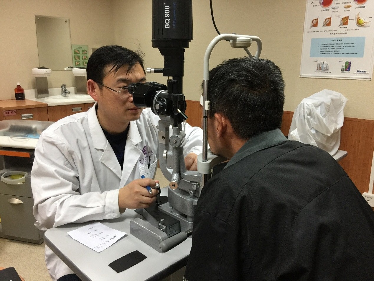 图4. 眼科张寒峭医师为一名听众检查眼睛