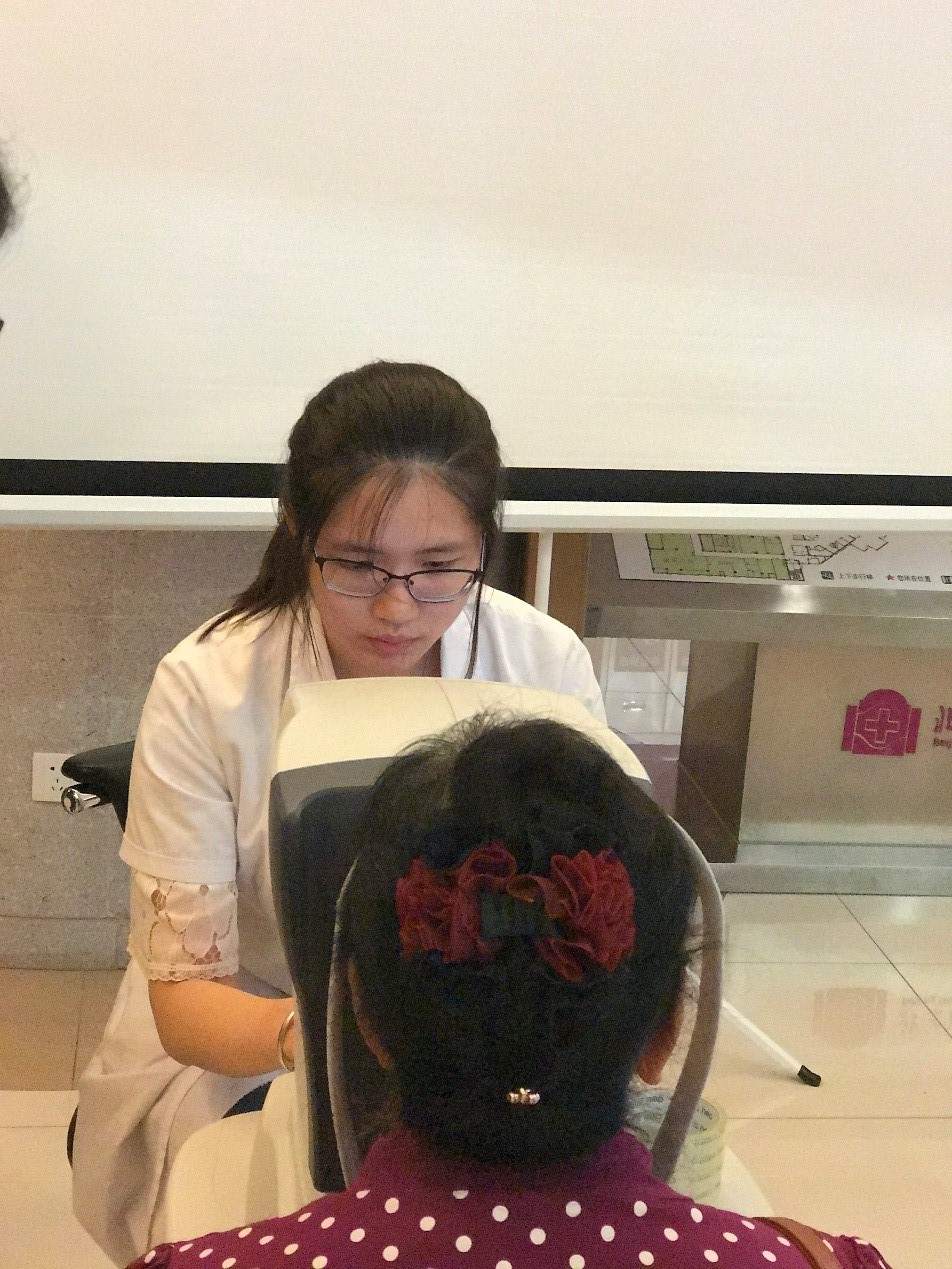 图5.眼科视光中心梁峥仪技师为现场听众验光