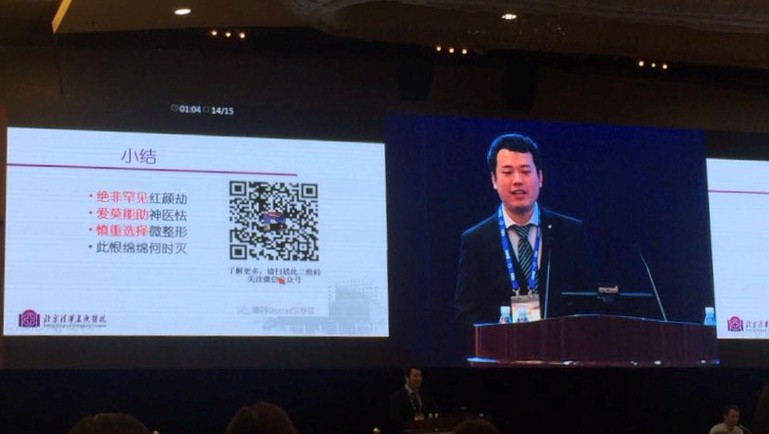 图4 司山成医师以一首打油诗对学术报告进行了风趣幽默的总结。“绝非罕见红颜劫 爱莫能助神医怯 慎重选择微整形 此恨绵绵何时灭”