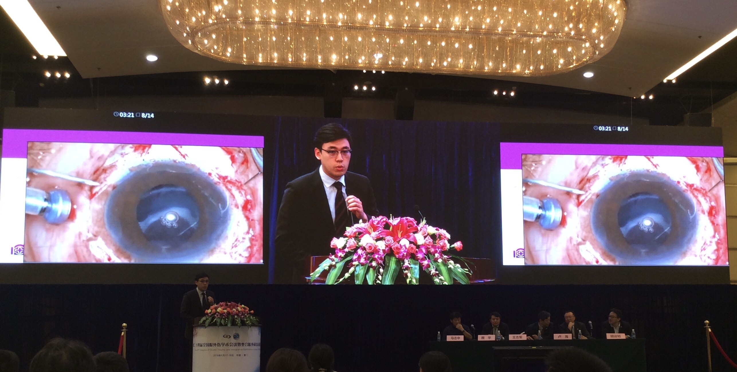 每年的全国眼外伤学术研讨会都有一个必不可少的环节,那就是“疑难病例讨论和手术视频分享”。在今年厦门的眼外伤会议上,这一部分的学术内容依然是万众期待、备受瞩目,我院眼科医师王奇骅在手术视频展示中向各位参会同道介绍了一种新的人工晶体缝合方法来治疗人工晶体脱位(图5)。针对人工晶体脱位的手术治疗提供了一种新的手术思路,并与各位眼科同道就手术的相关问题进行了讨论。