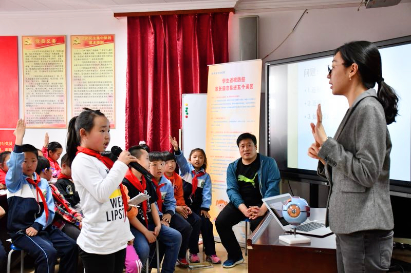 清华大学附属北京清华长庚医院眼科每年接诊上万人次儿童青少年近视患者,规范开展青少年近视防治、小儿斜弱视、验光配镜等项目。近两年的全国爱眼日均与近视防控相关,清华长庚眼科开展了义诊咨询、科普讲座等活动,让更多人了解近视,尤其是儿童与青少年近视的危害,普及防控近视的科学方法。科室医师也辅助社区医院进行幼儿视力筛查,并积极参与北京市组织的“健康教育进校园”等活动,到小学为孩子们讲解如何保护眼睛,鼓励他们关注自己的眼部健康。