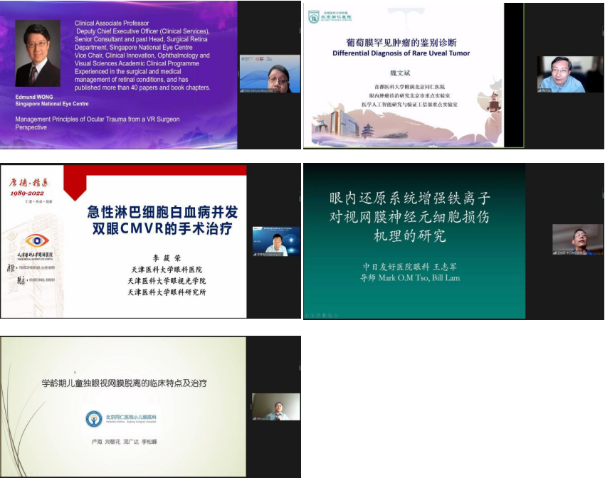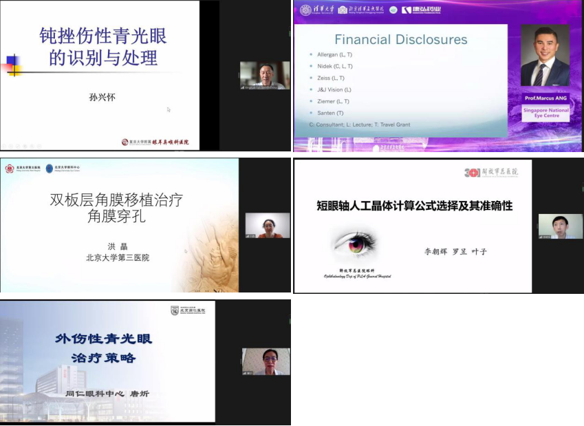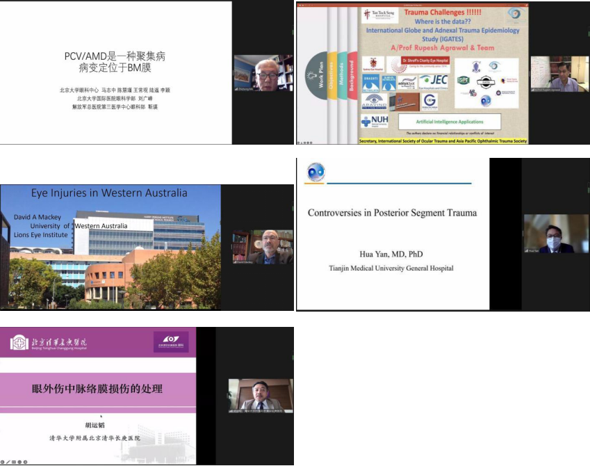 来自西澳大利亚大学David Mackey教授、新加坡眼科研究所Rupesh Agrawal教授、北京大学第三医院的马志中教授、天津医科大学颜华教授、北京清华长庚医院胡运韬教授共同为在线的眼科同道介绍了眼外伤最新救治理念和处理。