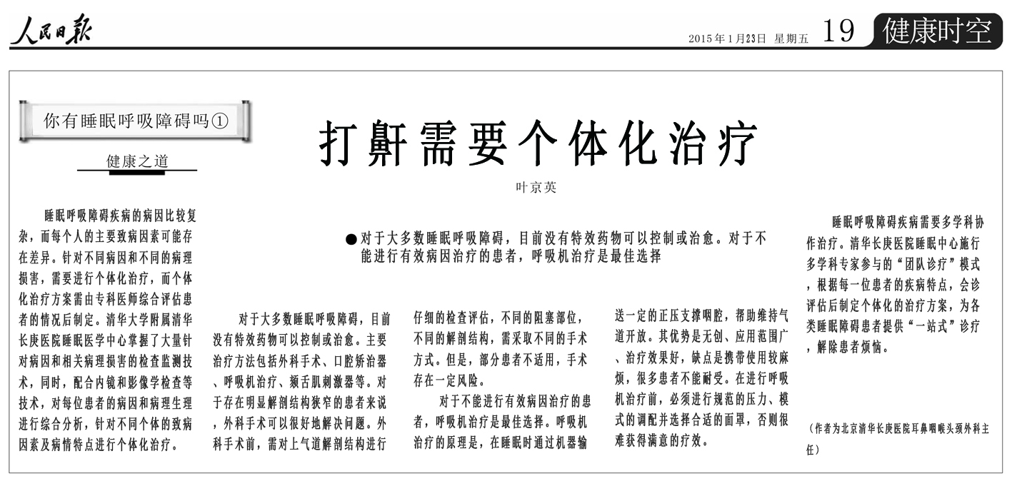 睡眠呼吸障碍疾病的病因比较复杂,而每个人的主要致病因素可能存在差异。针对不同病因和不同的病理损害,需要进行个体化治疗,而个体化治疗方案需由专科医师综合评估患者的情况后制定。清华大学附属清华长庚医院睡眠医学中心掌握了大量针对病因和相关病理损害的检查监测技术,同时,配合内镜和影像学检查等技术,对每位患者的病因和病理生理进行综合分析,针对不同个体的致病因素及病情特点进行个体化治疗。