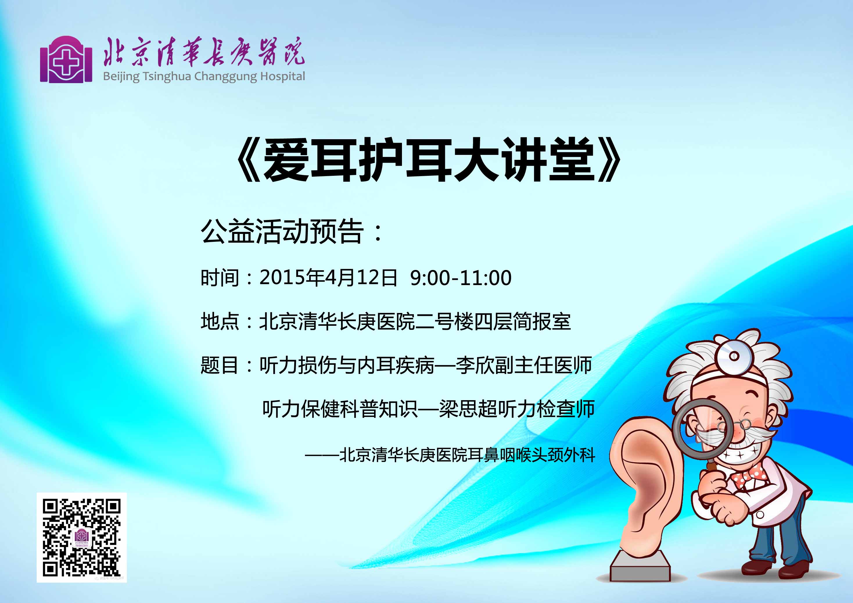 北京清华长庚医院-耳鼻咽喉头颈外科《爱耳护耳大讲堂》公益活动第三期,将于2015年6月继续为大家带来耳部健康新知识,敬请您的期待!