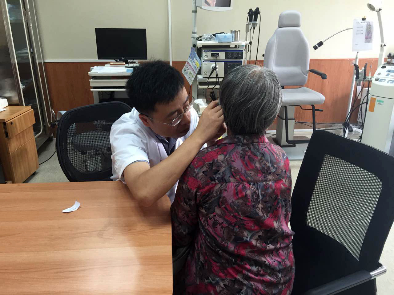 伊海金医生在为市民进行检查