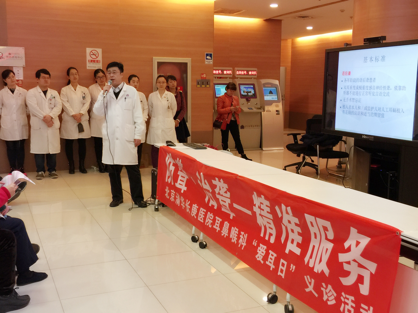 为响应全国“爱耳日”的号召,普及防聋、治聋的健康科学知识,宣导精准医疗的服务理念,清华大学附属北京清华长庚医院于2017年3月3日,即第18次全国“爱耳日”,也是第4次“国际爱耳日”当天,举办专家讲座及大型义诊活动,旨在提高公众爱耳护耳的健康意识,减少听力障碍的发生。