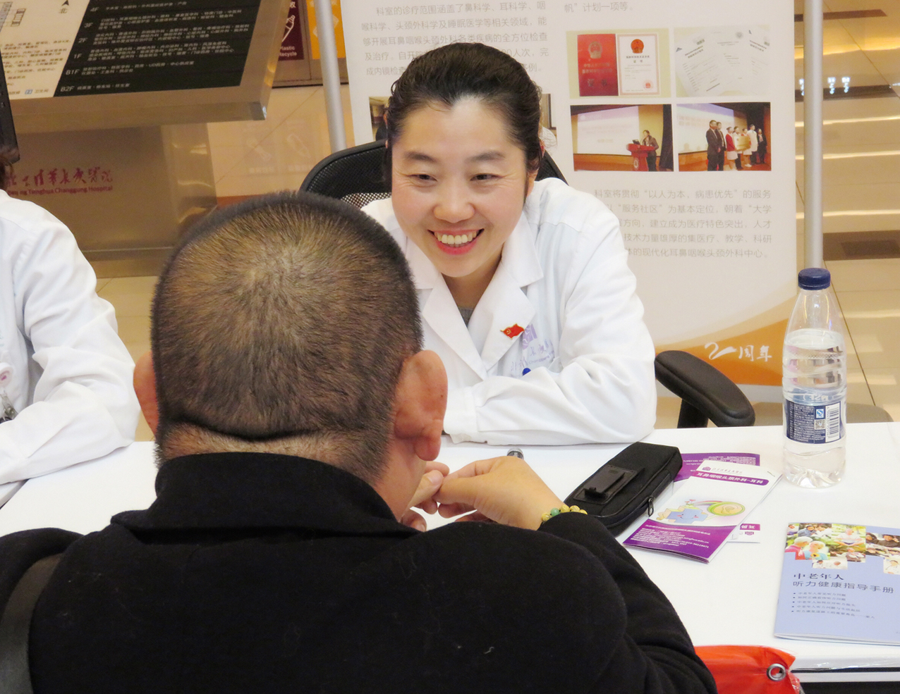 在科室主任叶京英教授统筹安排下,由北京清华长庚医院耳外科专家伊海金教授及耳内科李欣主任,针对耳科常见病及多发病的知识进行普及宣教,同时也提醒民众对于眩晕,面瘫等多学科交叉性疾病,注意及时排查耳源性因素,避免漏诊、误诊,错过最佳治疗时机,尤其就如何预防疾病,提高自身保健意识进行了重点探讨。在此之后,开展大型义诊活动,对前来咨询的民众给予热情细致地解惑答疑,免费为每位到场民众提供电耳镜检查,对部分可疑听力障碍患者免费进行纯音测听检查及助听器验配咨询。
