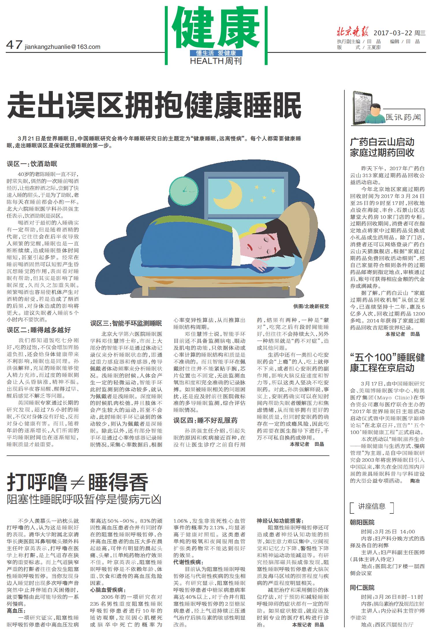 北京晚报-健康:世界睡眠日 走出误区拥抱健康睡眠