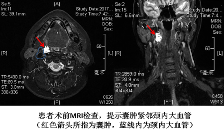 “只有手术完整切除囊肿及瘘管,患者的疾病才能得以痊愈,所以以往治疗过的医院多次的切开排脓并不能解决患者的痛苦。”叶京英说。但问题来了,患者脓腔大,与咽侧壁、颈内大血管关系密切,又曾反复感染,手术难度很大,口内入路切除容易切除不干净,并可能伤到血管、引发大出血,颈外入路创伤大,且感染的囊肿位置高,不易切除,有可能需要行下颌骨裂开术才能到达病变部位,术后有发生咽瘘的可能。
