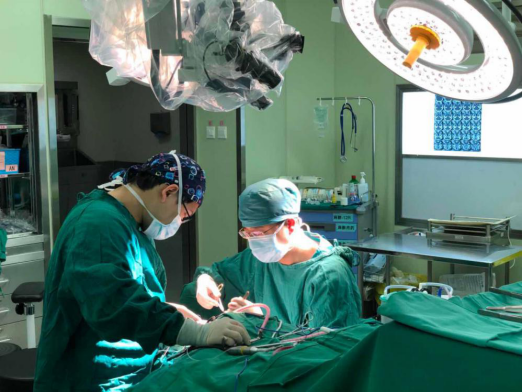 图为耳鼻咽喉头颈外科耳科组医师进行手术