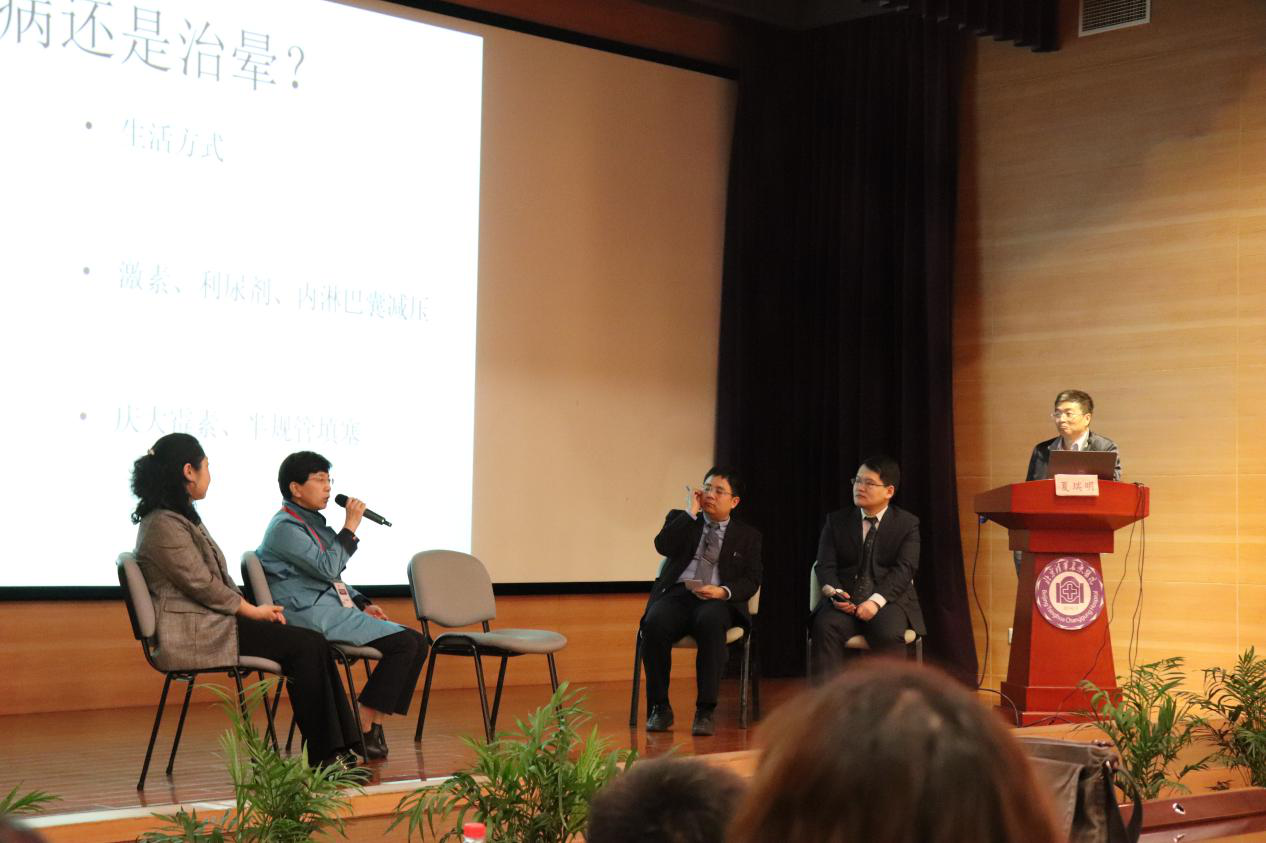 愉快的茶歇后,上午的圆桌讨论由北京大学人民医院的夏瑞明教授主持,航天中心医院神经内科杨旭教授、北京友谊医院王林娥教授、清华长庚医院李欣副主任医师、清华长庚医院许嘉博士结合临床病例,对周围性眩晕外科治疗适应症及手术方式选择进行了热烈地讨论,并回答了参会代表提出的问题。