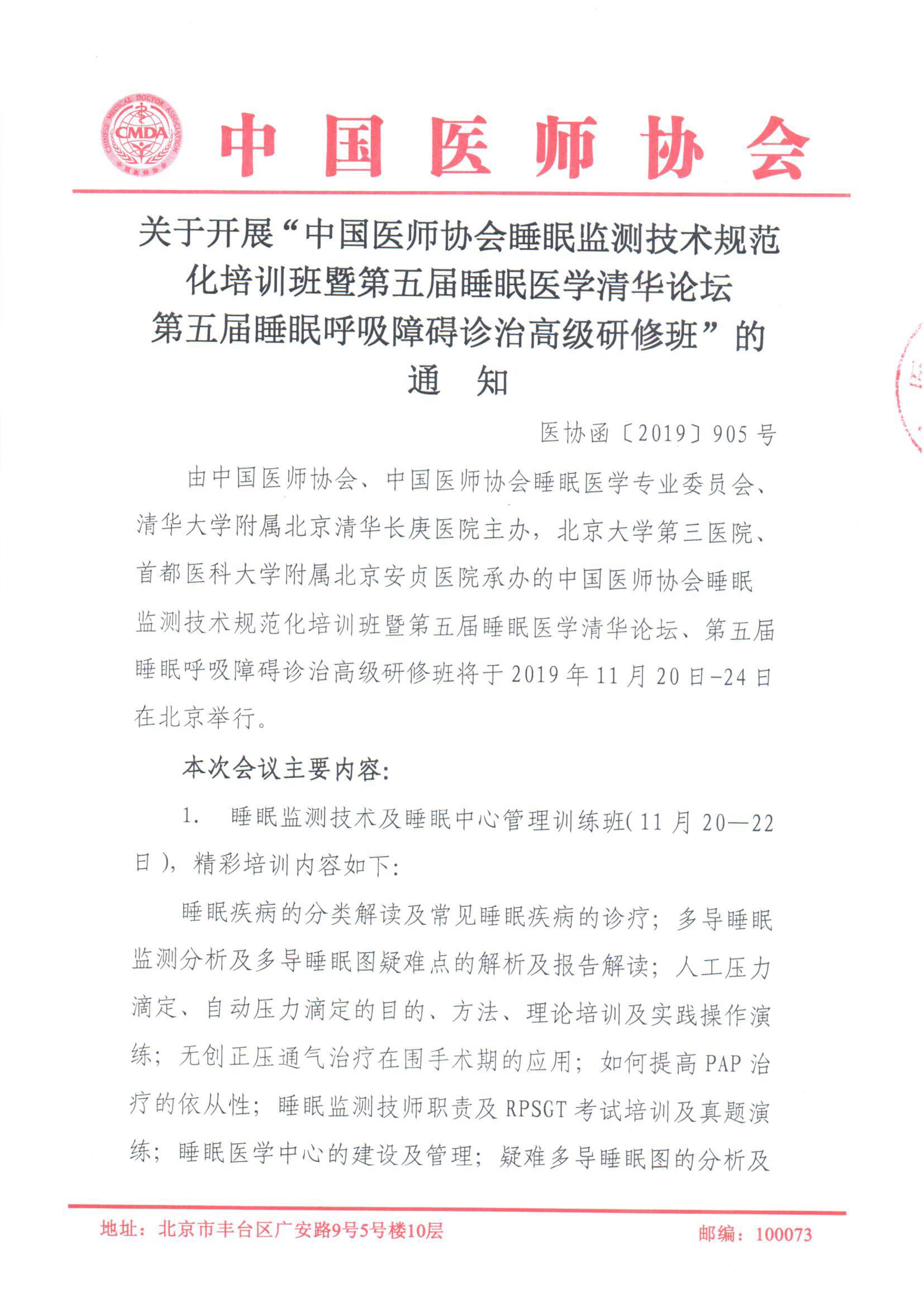 第五睡眠呼吸障碍诊治高级研修班-通知