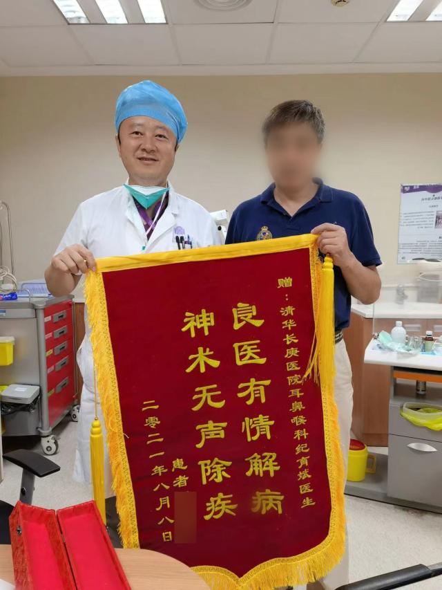 北京清华长庚医院9月9日电(通讯员 韩冬野)“纪大夫,谢谢您。”一个清亮的声音传进北京清华长庚医院耳鼻咽喉头颈外科诊室,正在忙着看诊的副主任医师纪育斌抬起头,原来是刚刚接受过微创手术的患者老闫,递过来一面锦旗。“真是言重了。”纪育斌说,只是常规手术而已。鲜红的锦旗背后是个怎样的小故事?