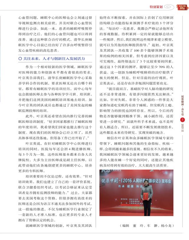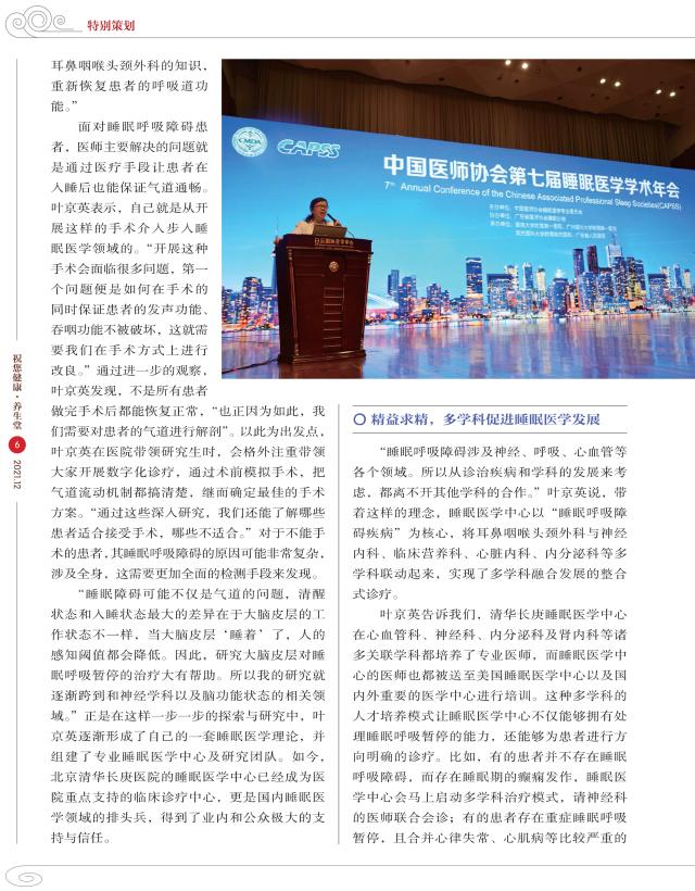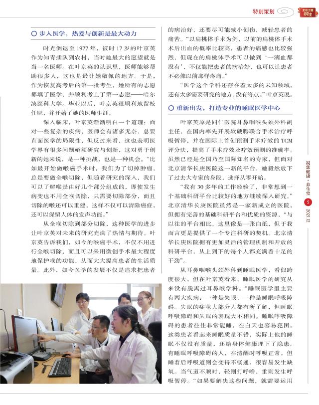 《祝您健康·养生堂》杂志封面人物报道我院耳鼻咽喉头颈外科主任叶京英教授