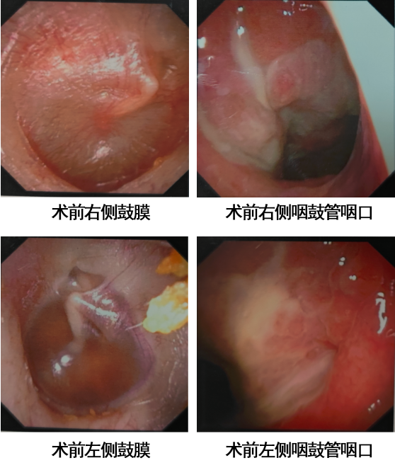接诊的主治医师高娟娟仔细为小刘查体后,发现患者双耳鼓室内大量积液,尤其是右侧积液较为粘稠,初步判断极有可能不是普通的分泌性中耳炎,进一步通过电子鼻咽喉镜检查发现,右侧的积液与左侧全然不同,左侧积液为淡黄色,咽鼓管咽口尚通畅;而右侧积液较为粘稠,且咽鼓管咽口已出现瘢痕增生及狭窄。