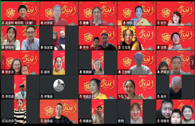 2023年元月13日20:00,耳鼻咽喉头颈外科分工会组织全科医护技和家属在腾讯会议线上欢聚一堂,大家喜气洋洋,出现在腾讯会议视频镜头内。