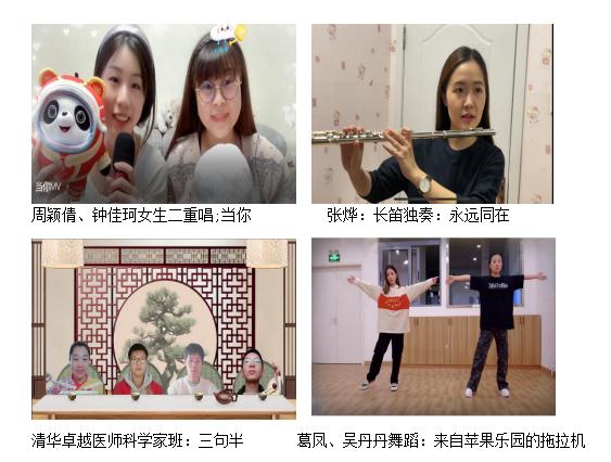 本次晚会的唱歌、舞蹈、乐器、魔术、三句半、才艺表演等都展示出了耳鼻喉科医护技的多才多艺和团队和谐的温馨情结,两次游戏环节也逗得观众捧腹大笑。两位年轻的美女医生周颖倩、钟佳珂一展专业版的动人歌喉,让腾讯会议的小火箭不断刷屏;张烨医生用悠扬的长笛演绎出永远同在的最高境界;护士葛凤、吴丹丹用舞蹈跳出了青春动感。清华大学卓越医师科学家班的三位同学在李欣老师带领下,把早接触临床科室的好奇心情用幽默的语言展示出来。睡眠室技师张杰的书法表演和张玉焕老师带领的睡眠技师团队的春联祝福给晚会带来更加喜庆的气氛。