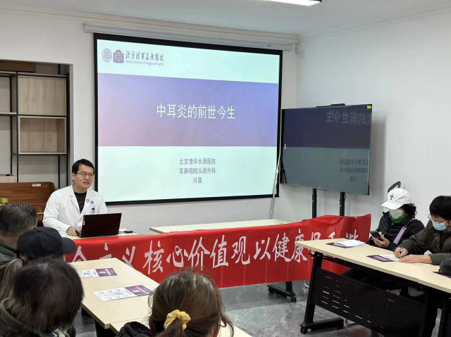 3月1日上午耳科专业组许嘉副主任医师和高娟娟主治医师联合西二西社区,为社区民众进行了“健康听力,幸福生活”为主题的健康讲座。许嘉医师以“中耳炎的前世今生”为题,为民众科普了社区发病率较高的疾病——“中耳炎”的病因、症状、及相关诊疗。高娟娟医师则贴心地为民众准备了“爱耳护耳健康小指南”,帮助大家预防听力障碍,聆听精彩未来。