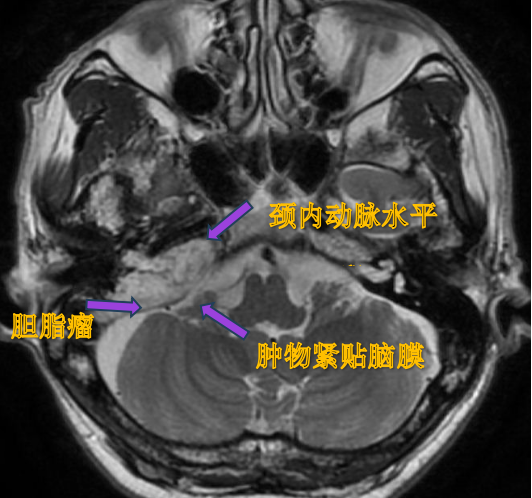 胆脂瘤破坏迷路骨质,并与脑膜紧贴