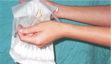 2.拆开冲洗棉枝包时,从木棒处拆封避免接触前端之棉花处,如图五,以免污染。