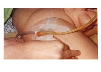 11.以优碘消毒尿管尿道口端约一吋(2.5公分),如图十三。