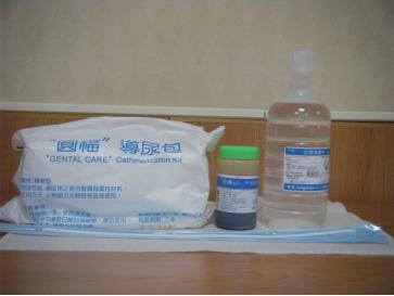 六、拆除导尿包封套,并将导尿包置于病人双腿间,告诉病人勿任意移动双腿,以免弄脏导尿包,增加感染的机会。