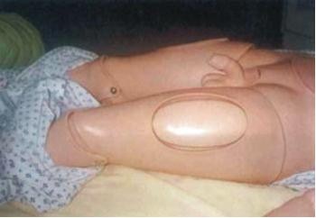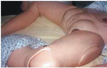 四、协助男病人采平躺仰卧姿势或半坐卧姿势,如图三,女病人则协助将双脚弯曲与肩同宽,采屈膝仰卧姿势或平躺把双腿张开姿势,如图四。