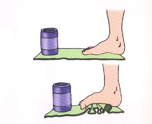 也可以把毛巾置于地面,再以脚趾抓握毛巾,以强化足部肌力(图5)。