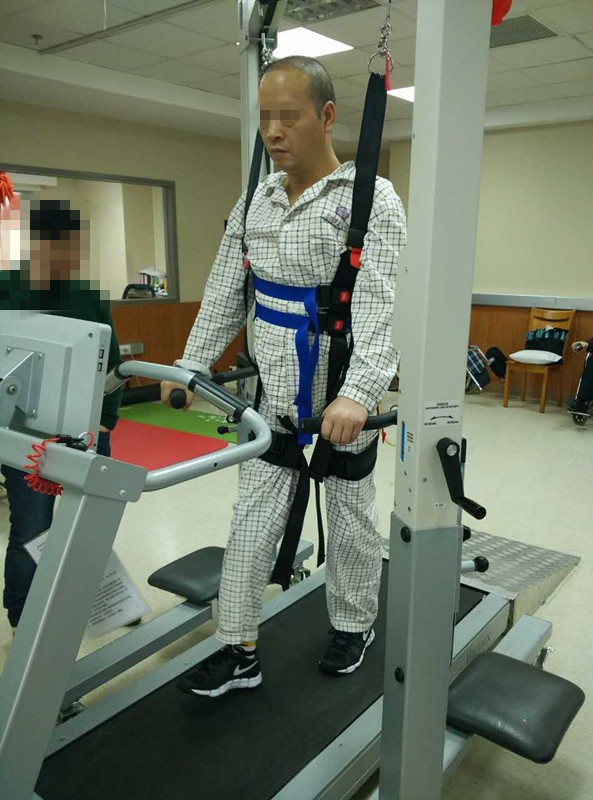 功能评定:患者双侧感觉平面及运动平面均为C1,肛门存在自主收缩证明损伤为不完全性损伤,且损伤平面以下一半以上关键肌肌力大于3级,故ASIA残损分级为D级,ASIA运动评分为 62分,感觉评分为64分。目前存在便秘,需开塞露辅助排便,小便需要留置尿管,左上肢肌张力稍低,左下肢肌张力稍高,无明显脊髓损伤神经痛。四肢关节被动活动度可。ADL评定:根据巴氏指数评价标准,患者除吃饭及转移为5分,大小便,修饰,用厕,活动,穿衣,上楼梯,洗澡均为0分。