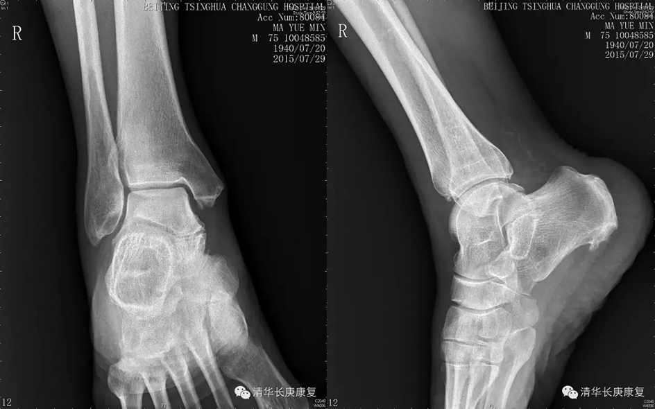 患者老年男性,主诉右侧踝部疼痛肿胀2年,加重10天。患者于2年前无明显诱因下出现右踝部疼痛肿胀,行走后加重,2年来症状反复发作,曾行封闭治疗后症状略缓解,就诊前10天无诱因出现疼痛及肿胀加重,行走受限。查体:右侧踝关节疼痛肿胀,VAS评分7分,右下肢髂腰肌、股四头肌肌力V-级,余下肢肌力V级,踝关节活动范围正常。