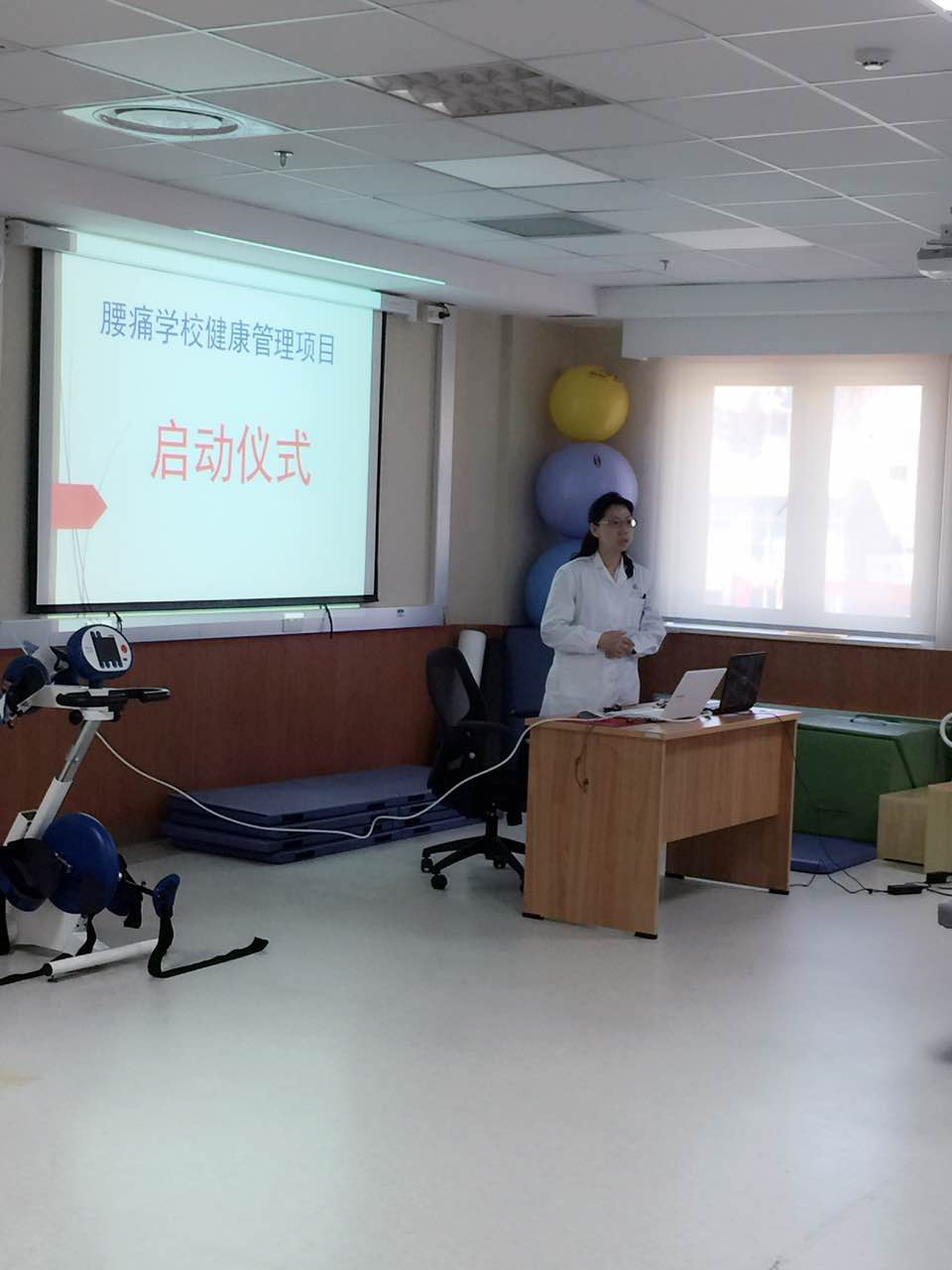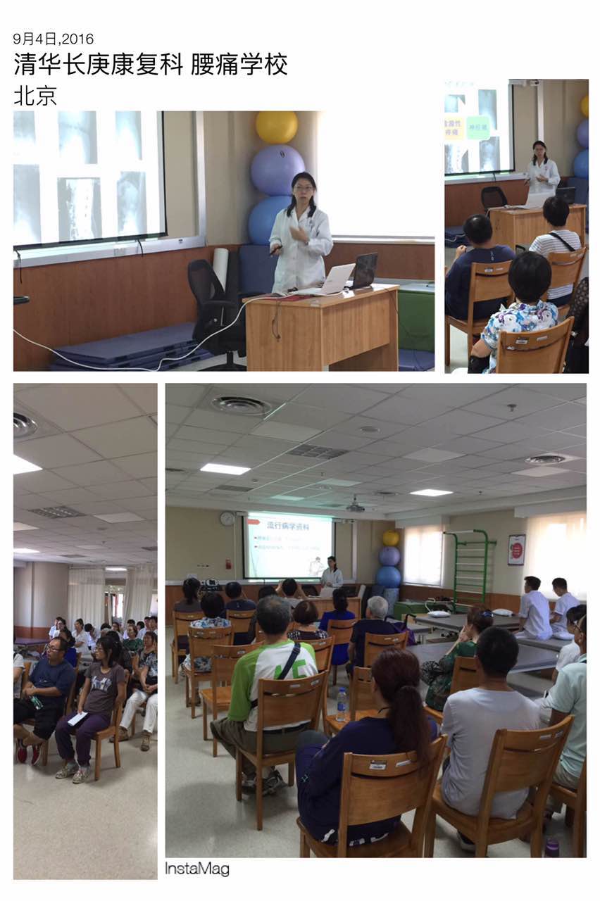 2016年9月3日,在潘钰主任的带领下北京清华长庚医院康复医学科的医务人员在康复医学科治疗大厅举办了腰痛学校第一次课程。经过了近半年的准备,腰痛学校终于在2016年9月3日下午1点半准时开始。