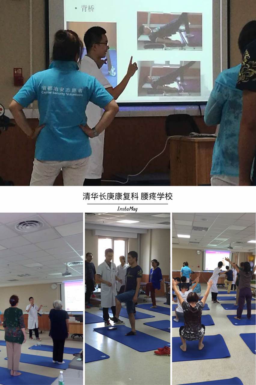 本届腰痛学校是北京清华长庚医院康复医学科倾力打造的康复类慢病管理品牌活动,也是保持腰痛患者康复疗效,提高患者预防腰痛复发,加强自我管理能力的专项活动。在这里,腰痛患者将通过理论学习、集体训练、共同参与、互动交流,全面提高对腰痛发病原因的认识,了解容易诱发腰痛的不良生活习惯,掌握自我训练方法,成为能主动控制腰痛发展、避免症状复发的优秀“毕业生”。预祝各位腰痛学校的学员们都能学有所得,远离腰痛。
