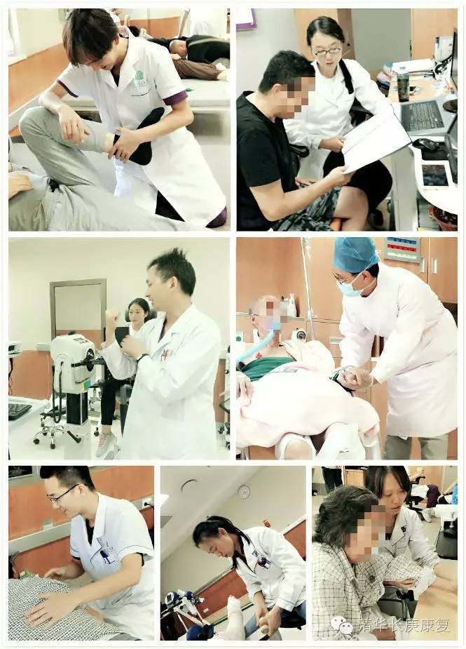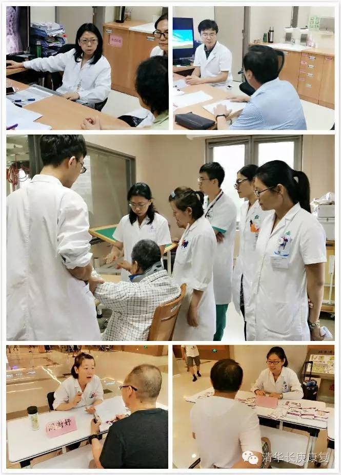 北京清华长庚医院康复医学科的每一天从查房和看诊开始。一早,潘钰主任就带领康复医师们到病房和康复大厅巡查患者,讨论病情,调整治疗方案。随后患者陆续进入康复治疗厅,治疗师们开始一天忙碌的治疗工作。为了让患者达到最好的康复目标,医生和治疗师们需要经常联合评估、沟通病情并制定新的康复计划。每天都能看到患者的点滴进步是我们最大的欣慰。
