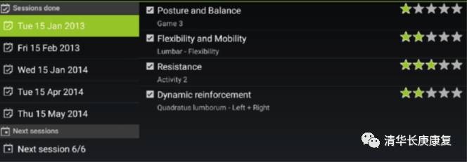 HUBER 360可以使患者在一个不稳定的环境下保持其自身的肌肉骨骼力量和协调性,姿势和平衡的稳定性。它有一套不同级别,不同类别的程序,以适应不同用户的需求。设备可以进行人机互动,并且允许对程序进行校准和调节。通过这种方式,可以为每一个患者设定个性化的目标,甚至可以根据性别,区分不同的康复的训练方案和不同训练困难级别。每一个项目都有打分晋级功能。每个治疗项目分为5个等级,从简到难共5颗星,每个等级100分,只有在当前等级超过80分后,项目难度才会自动往上升一级,直至5颗星难度。
