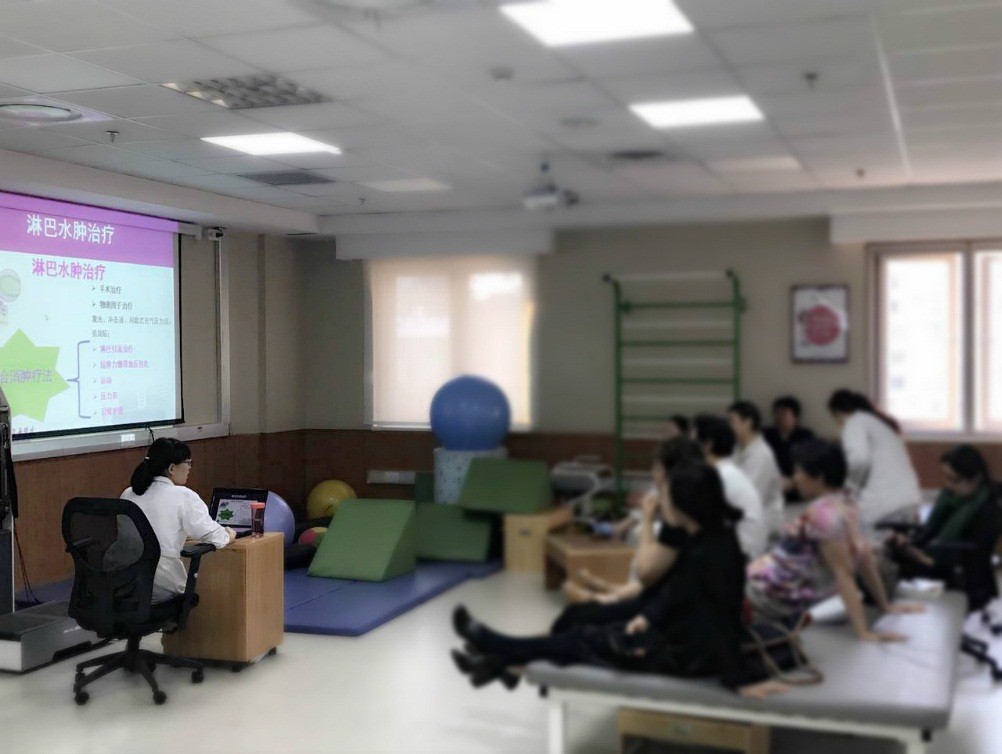 北京清华长庚医院康复医学科非常重视淋巴水肿的家庭自我管理,多次举办病友会,并指导患者自我手法引流技术和运动康复训练方法。淋巴水肿患者经过在医院全面系统的综合消肿治疗后,淋巴水肿肢体维度下降,皮肤纤维化改善后,经过良好的自我管理可以较长时间维持前期强化治疗的效果。