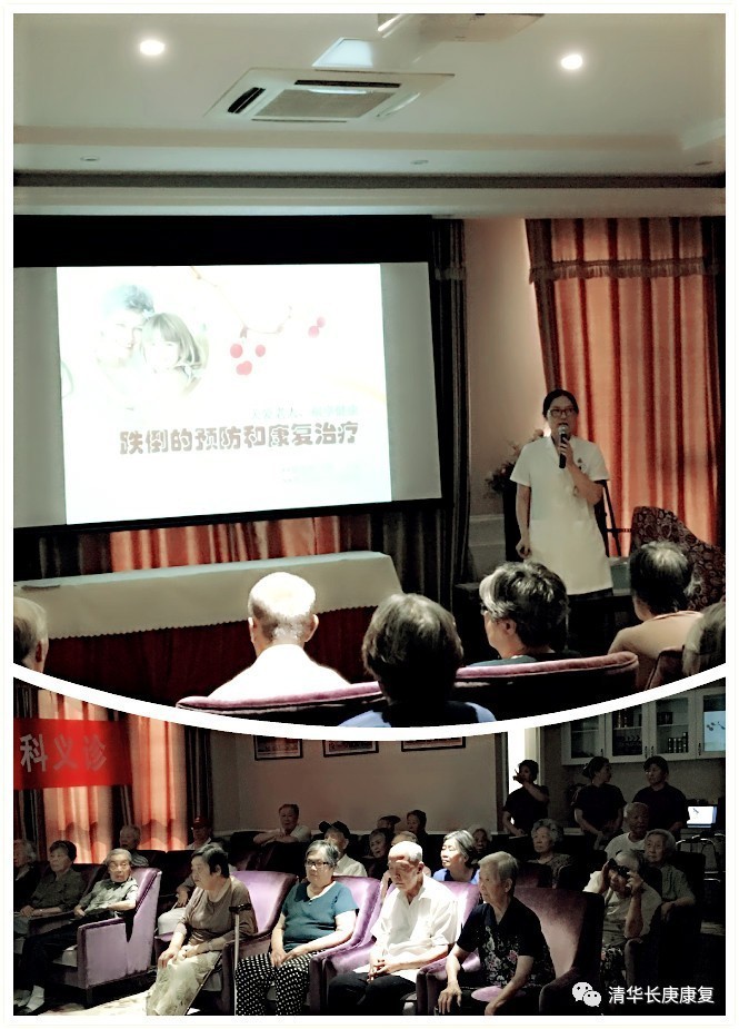 养老机构和社区作为社会化养老服务体系重要的组成部分,不仅承担老年人的起居饮食,还要承担老年人的健康医疗照护。北京清华长庚医院康复医学科每年都多次组织科室人员深入社区和养老机构针对老年人康复问题进行健康讲座和义诊,通过健康讲座和义诊不仅使广大居民,也让社区、养老公寓等相关机构了解到康复医学科可以给他们带来很多帮助,通过这些活动也让我们深刻的体会到,我们还需要努力继续做好康复宣传和普及工作,让更多的居民从康复中受益。