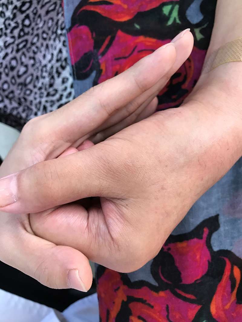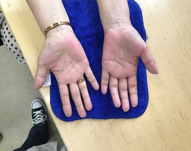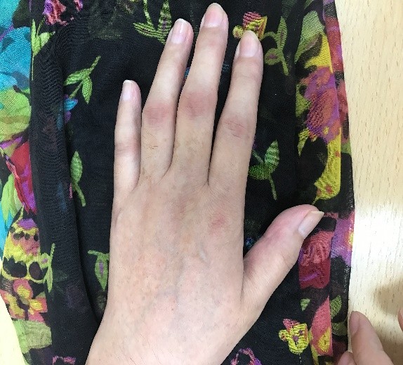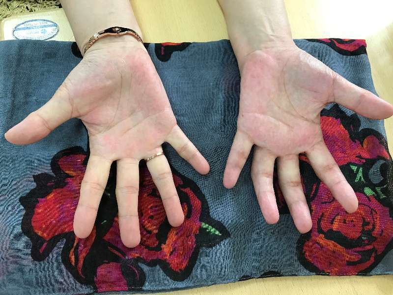 皮温双手基本一致,肤色变浅 |