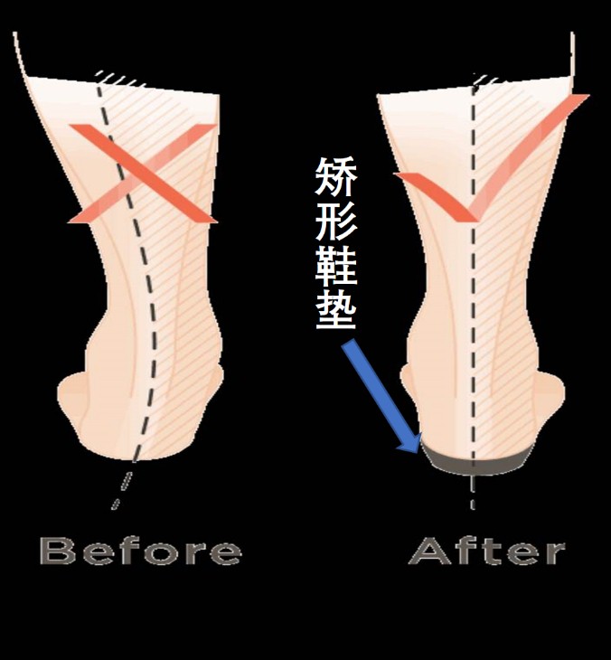 图为穿戴矫形鞋垫后下肢力线的变化
