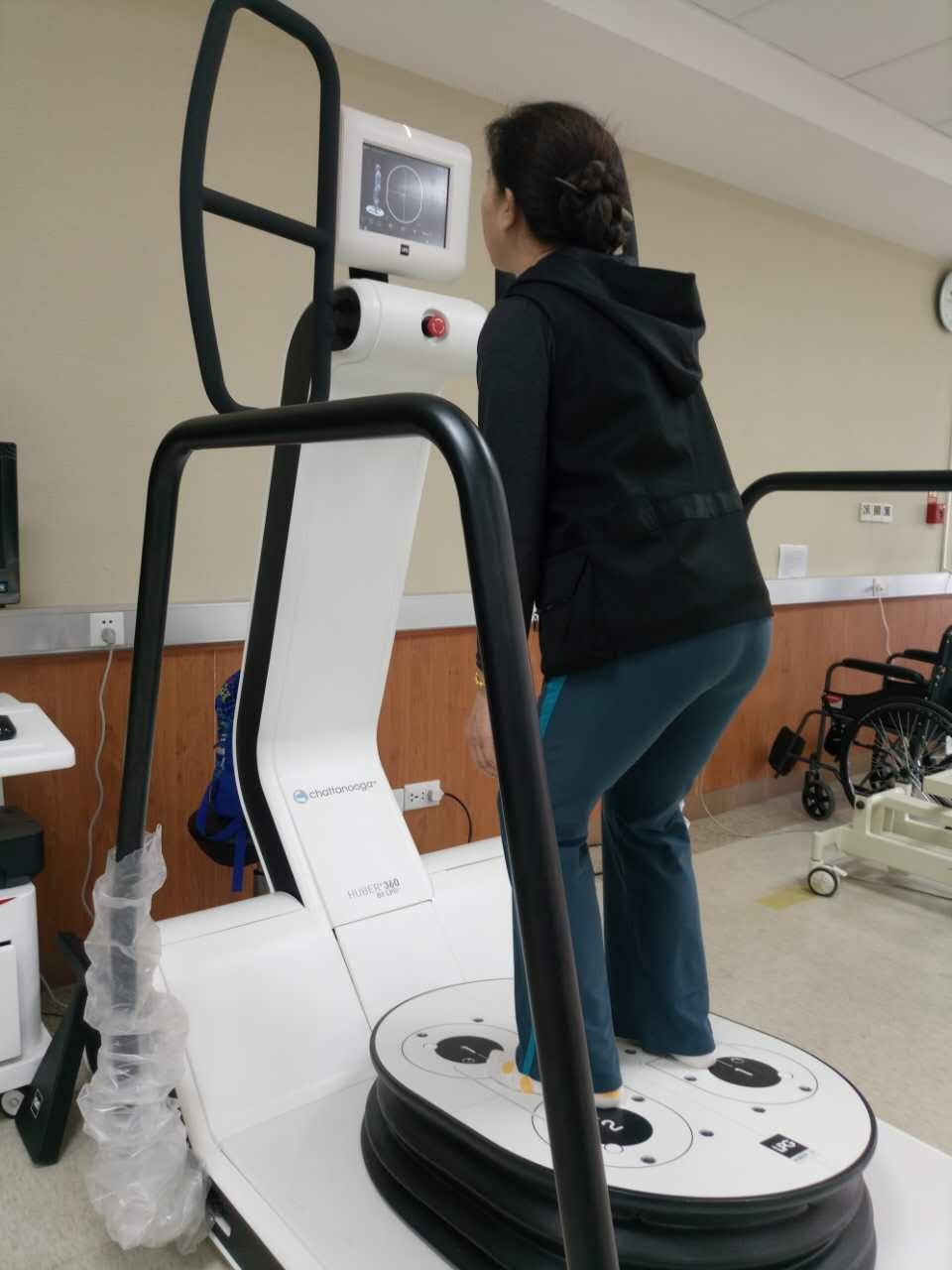 目前,除了急性期的理疗消炎和科学的自主训练外,康复医学领域还可以通过矫形器来矫正错误的体形,包括矫形鞋垫,脊柱侧弯矫形器等等; 通过有效的器械训练增强训练强度,提高训练精确度,如我们科引进的Huber-360训练仪在平衡训练方面展现了它独特的优势,它可以根据患者的个性化功能障碍,调整训练参数,如运动方向、角度及强度,提高了训练效率。