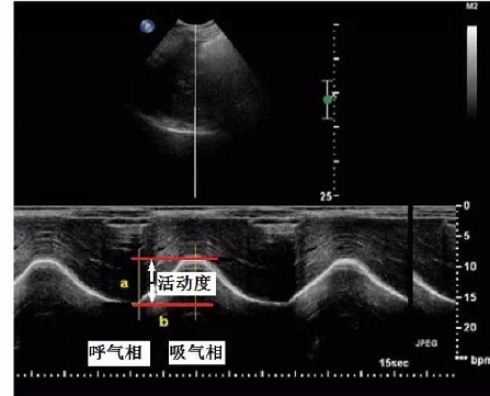膈肌活动(DE)超声评估:包括膈肌厚度和膈肌移动度,能较直观的观察膈肌活动时的的空间动量。