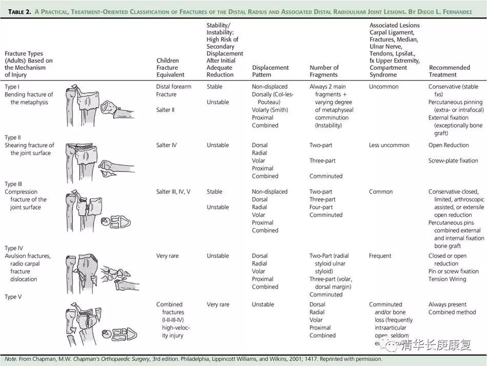 明确受伤的性质及严重性,目前最常见的是Fernandez系统,将桡骨远端骨折分为五大类: