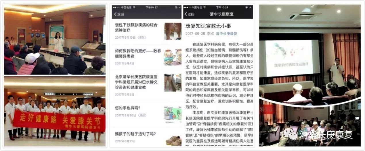 向大众居民普及康复知识是我科室重要的常规工作之一,每年积极深入社区、养老院、学校开展健康讲座和义诊近10场,在微信等公众平台及各大媒体上发布各种疾病科普文章近100篇,阅读量超过50000次,多种形式的宣传康复医学知识,得到广大患者的广泛的关注和热烈的反响。