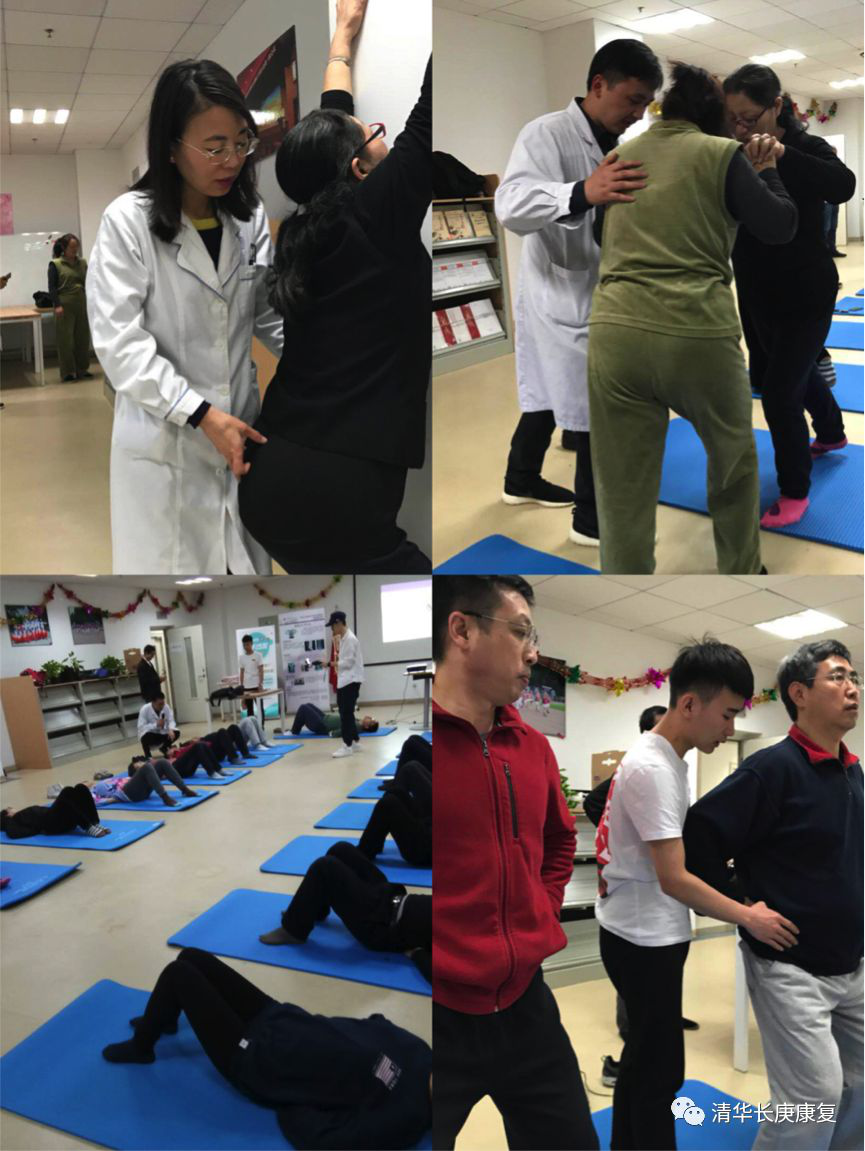 当我们及时纠正姿势之后,我们该如何加强我们受伤已久的腰椎呢?如同吴琼老师的观点保持腰椎良好的生理曲度及核心肌力,避免增加腰椎负荷和外伤机会。在听完理论课程之后,我们进行现场动作指导,让大家印象更深刻,学员参与感更强。在训练过程中经常会提到屈髋、屈膝代替弯腰的动作,下面这几组大家做得到吗?