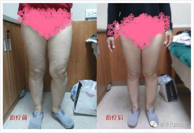 图为治疗前后下肢水肿情况