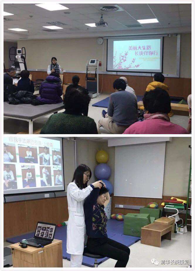 图为潘钰主任和孙小花老师在淋巴水肿病友会讲课