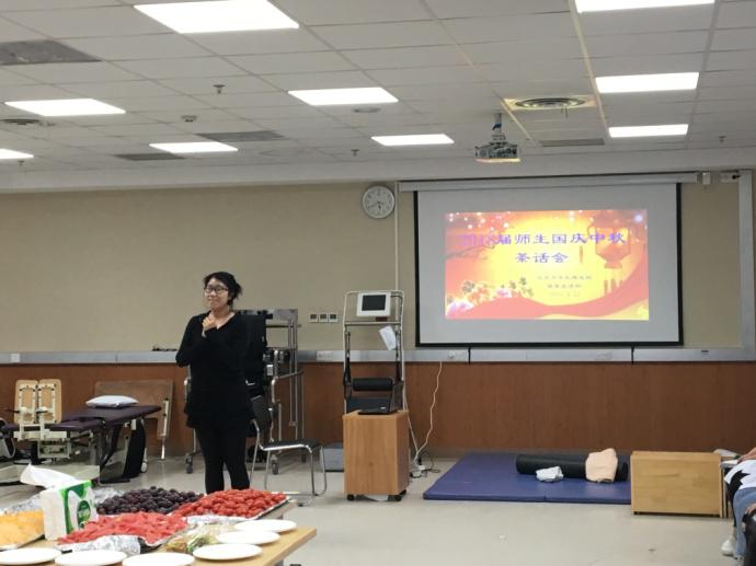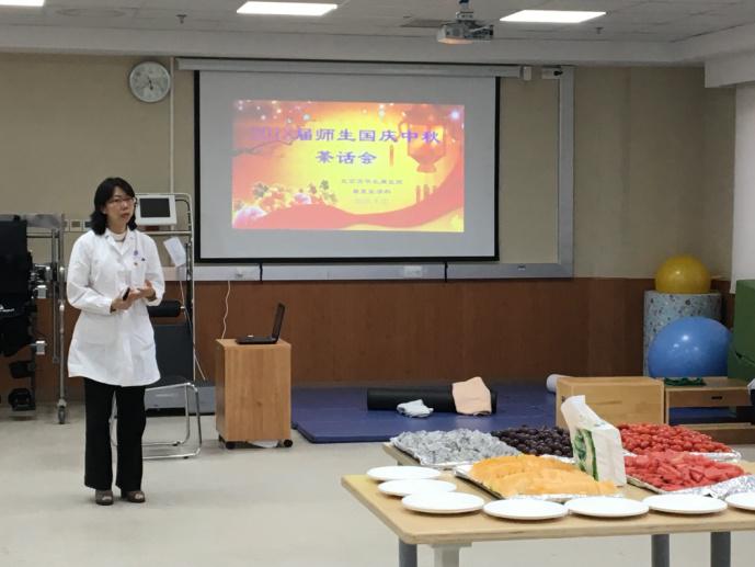 秋高气爽,中秋月圆,9月21日下午,康复医学科老师和同学们在一天的繁忙工作之后,在宽敞明亮的治疗厅内举办了“喜迎国庆,共话中秋”师生茶话会,在潘钰主任的主持下,康复医学科全体医护人员共计80余人欢聚一堂,大家一同品茗赏月,充满了浓浓的节日气氛,科教处王甲瑶老师也受邀一同参加本次茶话会。
