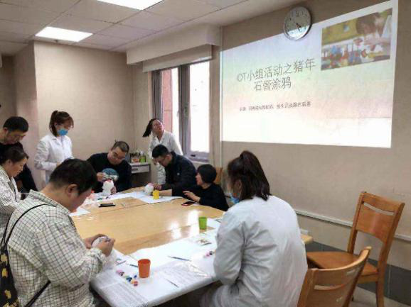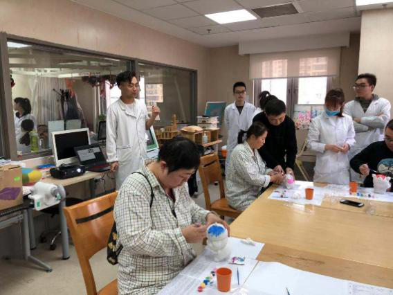 本次OT小组活动不但提高了患者的上肢和手功能,增强手眼协调与精细运动能力,促进患者间、患者与治疗师,患者与家属三方面的沟通与交流,为其重新回归生活,回归社会做了铺垫。同时也丰富了单调的住院生活,增强了患者对治疗的认同感和主动参与,有助于调节抑郁与焦虑等不良的情绪状态。活动同时也锻炼了OT治疗团队,对今后开展新形式的治疗打开一扇窗。