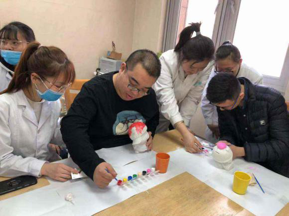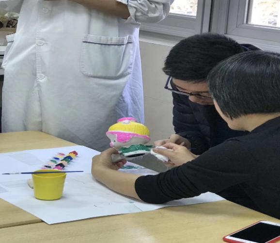 2019年2月25日,北京清华长庚医院康复医学科也为患者们准备了一场别开生面,意义非凡的新年主题小组活动—石膏彩绘。本次活动主要的治疗对象是康复医学科的4位脑卒中患者,四位患者都患有不同程度的上下肢体运动障碍、言语功能障碍,尤其是手功能障碍严重影响日常生活能力,这些康复问题困扰着这几位患者和他们的家人。他们的手功能障碍经过系统的康复治疗,并结合肉毒素毒素注射和脑机接口手功能康复机器人训练,从不能动到出现主动运动,患者和家属都很兴奋,看到了康复的希望,也对下一步康复充满期待,特别是如何训练帮助他们提高日常生活自理能力,成为康复重要方向和目标。