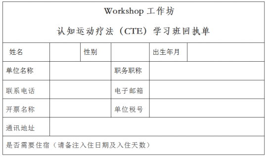 认知运动疗法(CTE)workshop:注册费1000元(2月28日前800元),以汇款为准,限报50名。